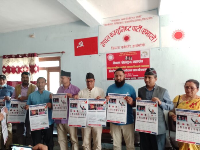 नेपाल कम्युनिष्ट पार्टीको ७४ औं स्थापना दिवसको अवसरमा अतिथिहरुले कार्यक्रममा नयाँ वर्ष २०७९ सालको क्यालेन्डर विमोचन तथा शुभकामना आदानप्रदान गरेका थिए । खेलकुद महासंघका जिल्ला उपाध्यक्ष लालबहादुर घ.म., शकुन्तला अधिकारी ,अमृत थापा र कोषाध्यक्ष सुन्दरा न्यौपाने लगाएतको उपस्थिति खेलकुद महासंघ अर्घाखाँचीका जिल्ला अध्यक्ष हेनरी बस्नेत काे अध्यक्षता सहसचिव प्रकाश महत स्वागत मनत्वय